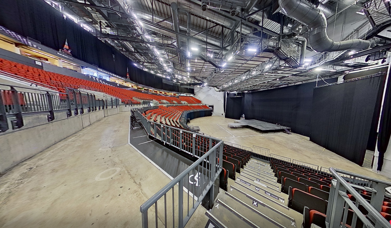 A versatile area of the arena with flexible catering, audio-visual, and furniture support